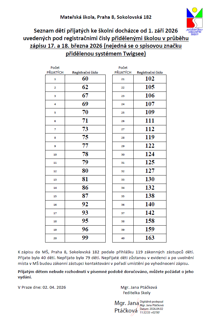 Zápis probíhal v úterý 17.března a ve středu 18.března 2026.